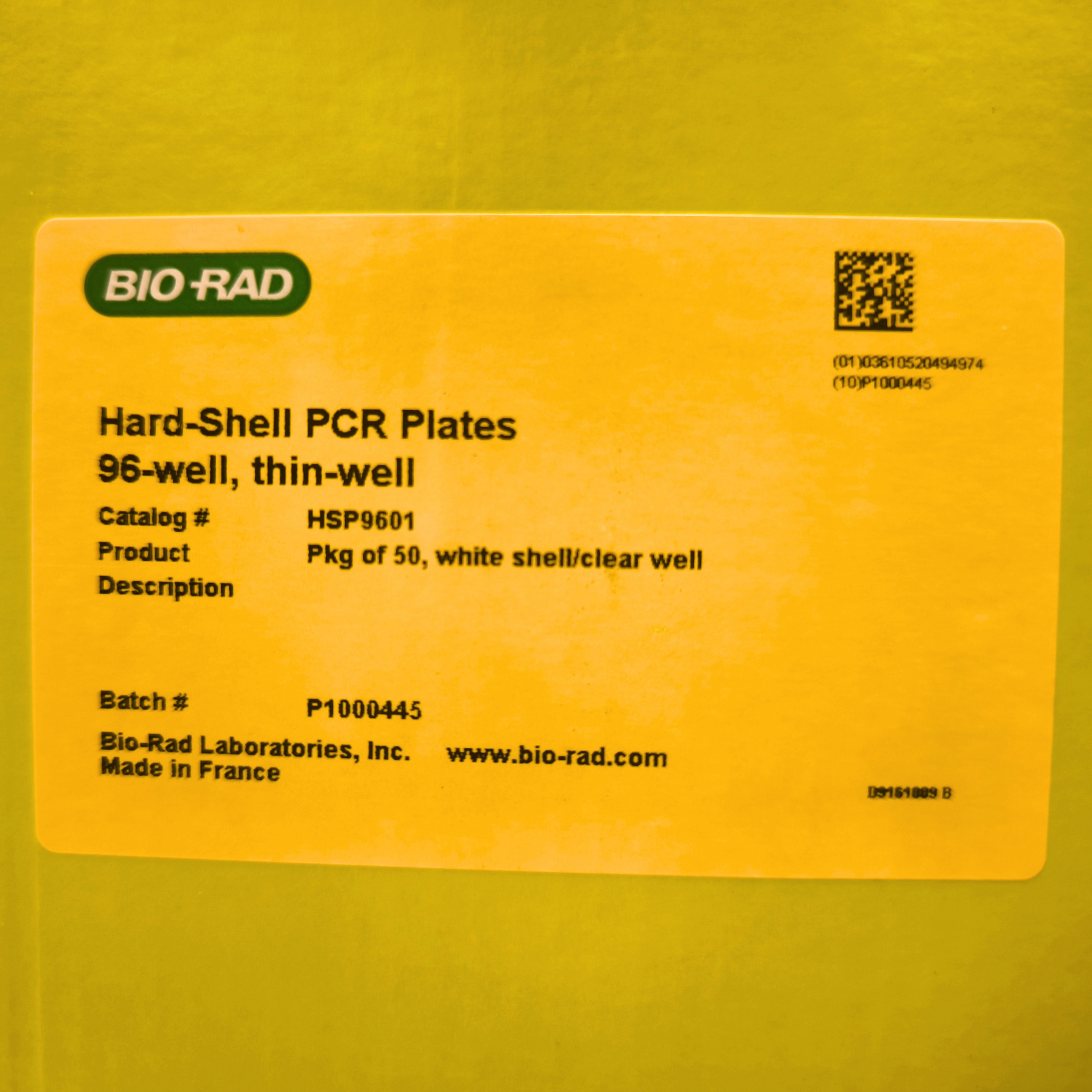 Hard-Shell® 96-Well PCR Plates, low profile, thin wall, skirted, white/clear, Pack of 50 (HSP9601)